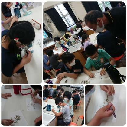 校内をまわると、5年生は理科の学習で、煮干しを解剖して顕微鏡で観察していました。ピンセットで解剖した煮干しを真剣に観察していました。