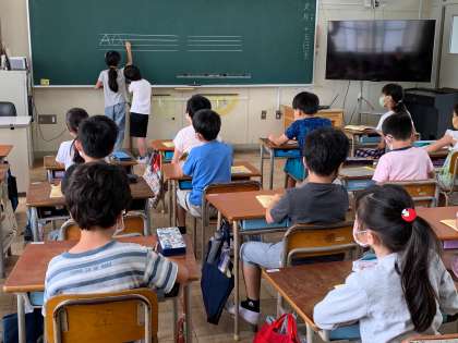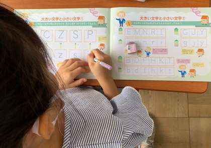 4本の線の中で、どこから書き始めるのか確認しながら書いています。