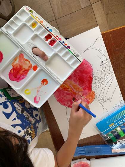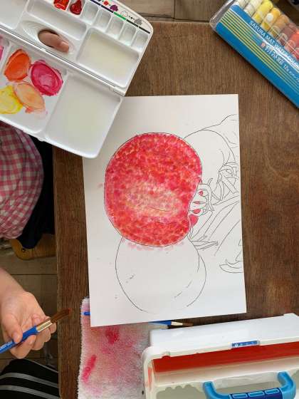 考えて色を作り、点々と丁寧に色をのせます。