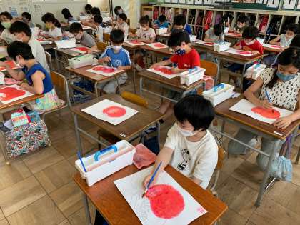 紙を傷めないよう、丁寧に絵の具をにじませることができました。