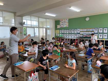 じゃんけんゲームでは、ペアの友だちと英語を使いながら楽しくコミュニケーションを取ることができました。
