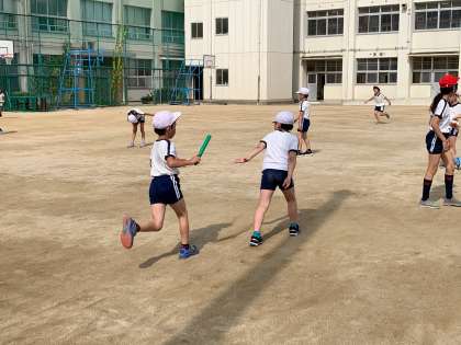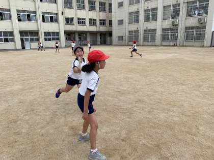 渡す手と受け取る手を確認し、ペアで練習しました。