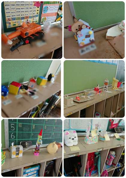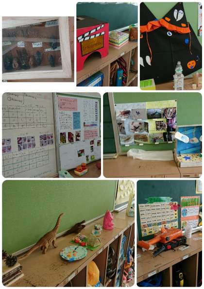 子どもたちが夏休み中に取り組んだ作品などが、教室に飾られています。