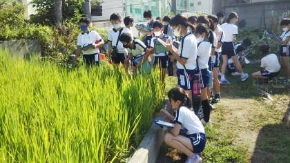 夏休みが明け、久しぶりに丘の田んぼを観察しました。