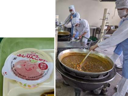 りんごゼリーは山形県産ふじりんごの果汁を80%使用したゼリーです。「明日もゼリー出して!」と言う子もいました。