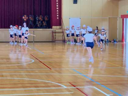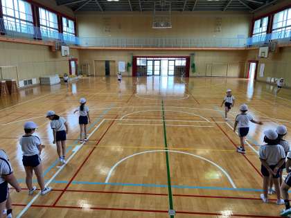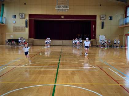 ストレッチと水分補給をしっかりと行い、リレーの練習をしました。