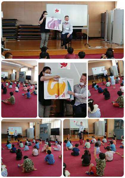 たくさん動物が出てくる英語の絵本を、先生と一緒に読みました。