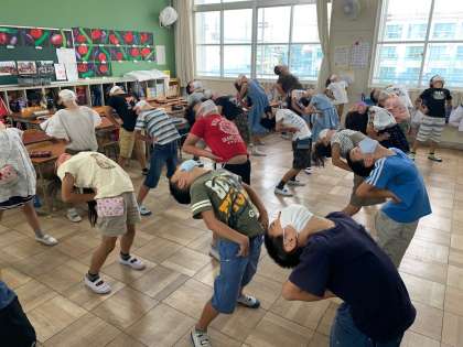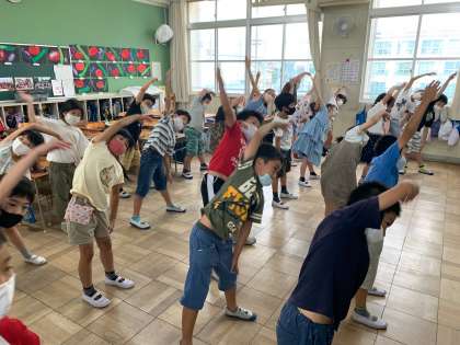 今まで校長先生に教わったポイントを思い出し、どこを伸ばしているのかを考えながら、正しくラジオ体操ができるように練習を続けていきます。