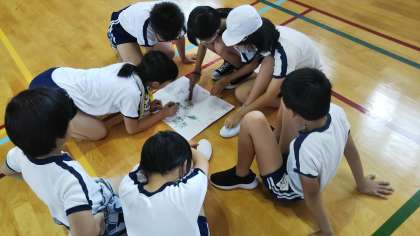1学期に社会科の学習で沖縄の文化に触れた子どもたち。