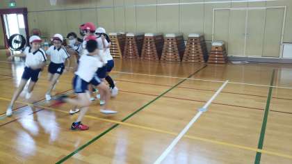 9月11日(金)1時間目、講堂で体育をしました。