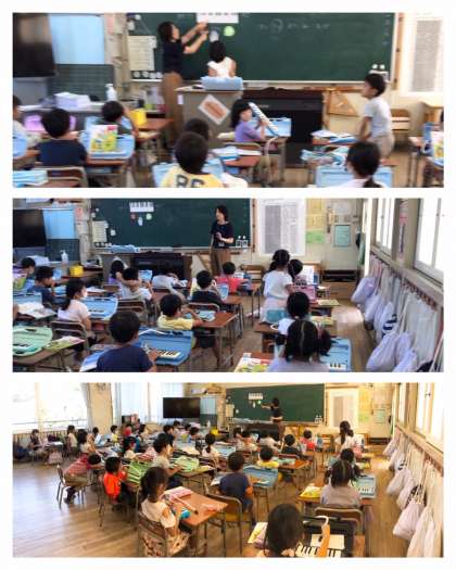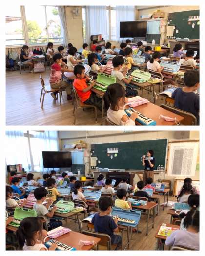 今日は教頭先生が、けんばんハーモニカの授業をされています。