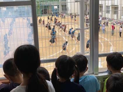 昨日、今日と、6年生のソーラン節を教室から見学させてもらい、最高学年の迫力ある演技に子ども達は圧倒されていました。