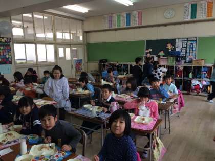 今日のメニューは、さけちらし、雑煮、焼きれんこんの