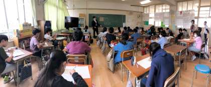10月1日(木)3時間目、6年2組で教育実習生の研究授業が行われました。少し緊張気味の実習生ですが、子どもたちは前向きな姿勢で授業を受けています。