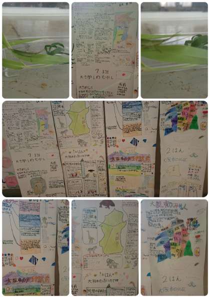 3年生の教室前には、虫かごが置いてあり、中にはなにやら秋の虫が・・・。