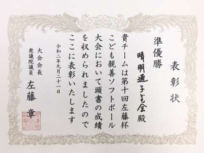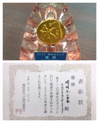 10月5日(月)の全校朝会で表彰された、表彰状とクリスタルトロフィーです。全校児童から大きな拍手が贈られました。