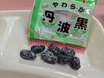ソフト黒豆は、国内産の丹波黒大豆を使用し、甘く味付けされています。見た目よりもやわらかく、食べやすいです。鉄分を多く摂ることができます。