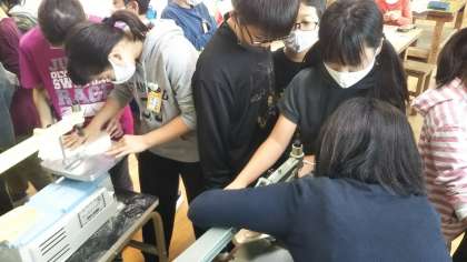 初めての糸のこ盤でしたが、真剣な表情で、男女関係なく協力して安全にやりきることができました。