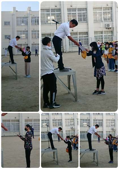 児童朝会では、ミニバスケットボール女子チームの表彰がありました。