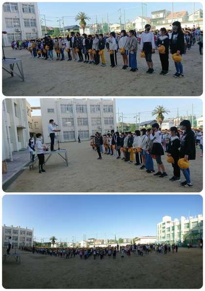 「朝、学校に来る途中に、自転車の事故を見ました。皆さんも『危ない』と思ったことがあるのではないでしょうか。身の回りには危険なことがたくさんある、ということをいつも考えながら行動しましょう。」