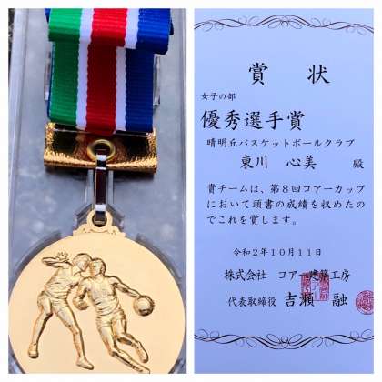 10月12日(月)全校朝会で伝達表彰が行われ、晴明丘ミニバスケットボール女子チームに表彰状並びに優勝カップが授与されました。あわせて、最優秀選手賞・優秀選手賞も授与されました。おめでとうございます!大きな拍手が贈られました。