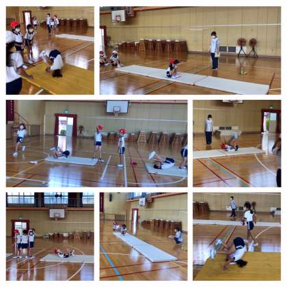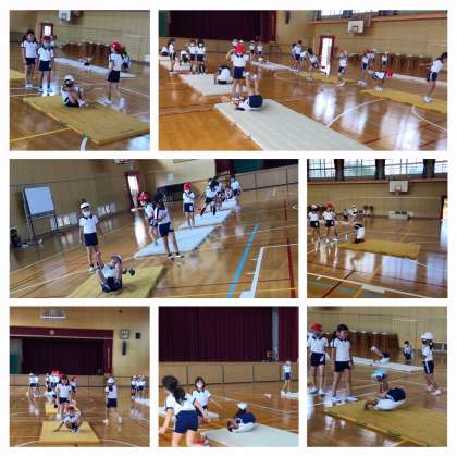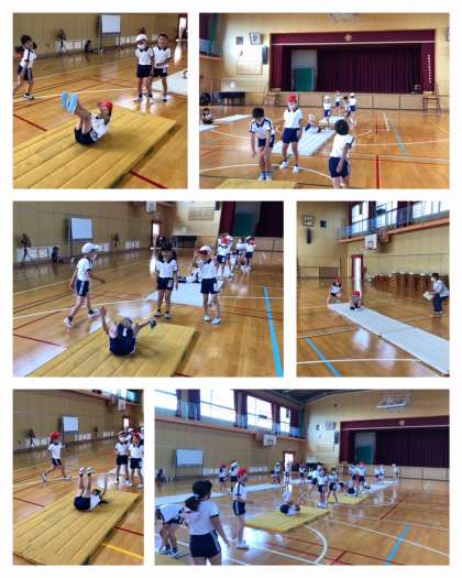 2年3組は、体育館でマット運動です。