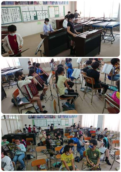 5年生は、音楽室で「キリマンジャロ」の合奏の練習をしていました。