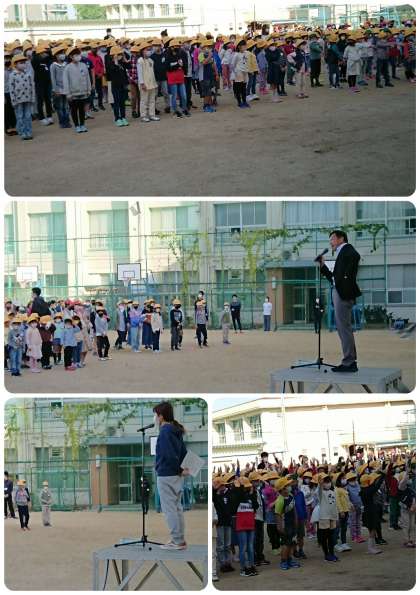 今月の目標は「外で元気よく遊ぼう」です。みんな元気よく遊ぶことができています。学校のルールを守って、楽しく遊ぶようにしましょう。