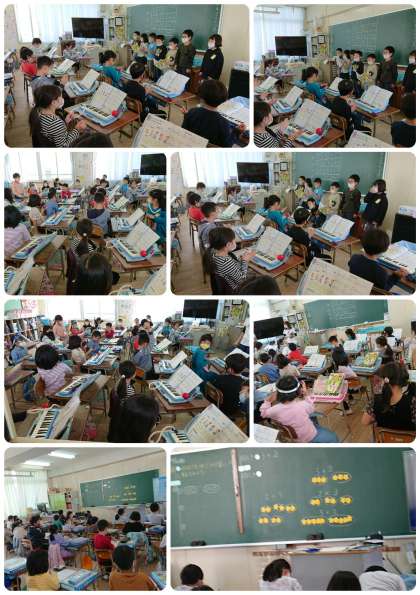3時間目、2年生は、音楽の学習をしていました。拍にあわせて歌ったり演奏したりしていました。前に出て歌う人に合わせて、手拍子していました。