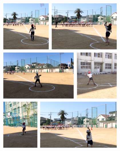 10月27日(火)1・2時間目、1年生がスポーツテストのハンドボール投げを行いました。ボールを投げる動作は、難しいようです。