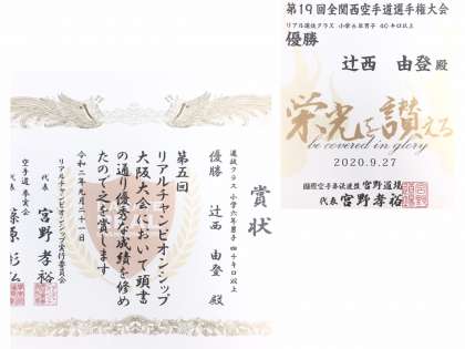 全関西空手道選手権大会「優勝」、リアルチャンピオンシップ大阪大会「優勝」