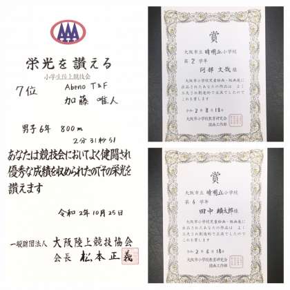 大阪陸上競技協会主催の小学生陸上競技会男子800m「第7位」