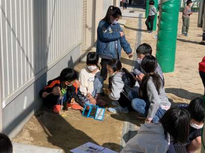 子どもたちは、「今なら太陽が出ているから実験に出るチャンス!」「あの辺りの壁を使ったら影があるから実験ができる!」と、自分たちで考えて行動することができました。