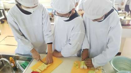 11月4日水曜日、調理実習でご飯と味噌汁を作りました。