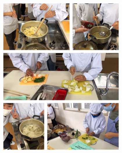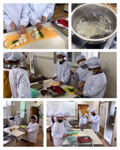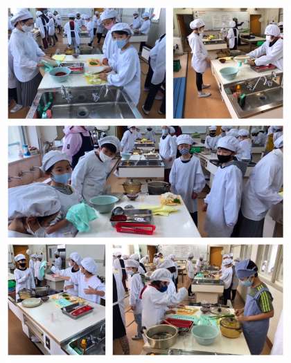 11月6日(金)1・2時間目、5年2組が調理実習に取り組んでいます。