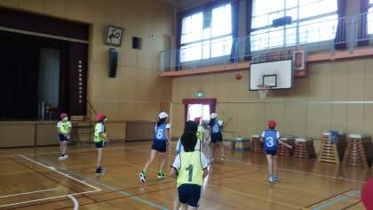 11月7日、土曜授業の3時間目に、講堂で体育科の学習として、バスケットボールに取り組みました。