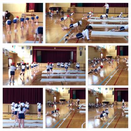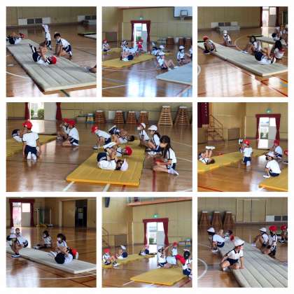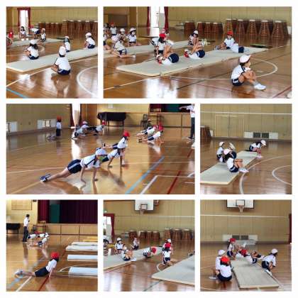 続いて、手だけで前進するアザラシ歩行。手首の強さや体感を鍛えます。