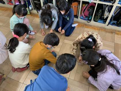 オリジナルの模様に挑戦する児童が多く、色鮮やかなこまがたくさんできあがりました。