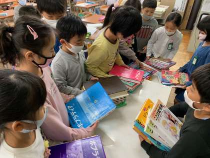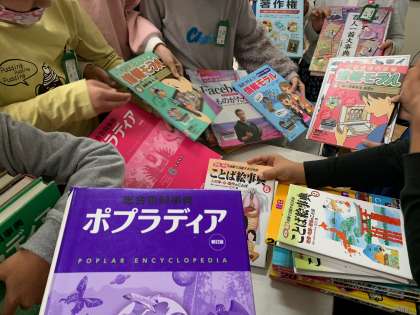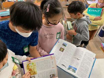 自分の興味のある分野についての内容がたくさん載っている百科事典に、「こんなにおもしろい本があることを知らなかった!」という声が上がり、さっそく図書室で借りている児童も多くいました。