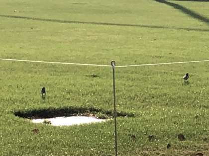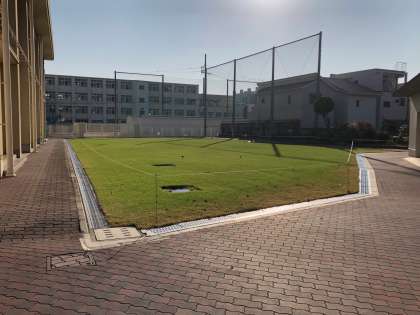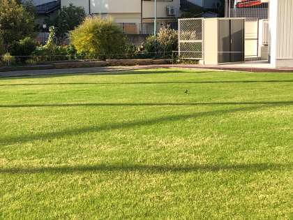 冬芝のあざやかな緑色が、とても美しく朝陽に輝いています。