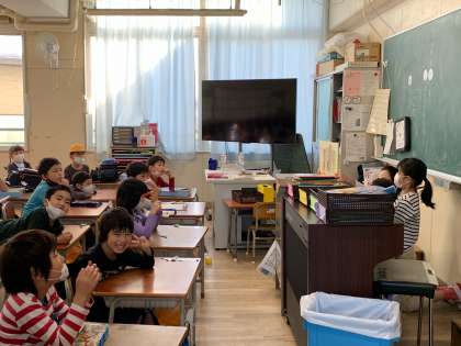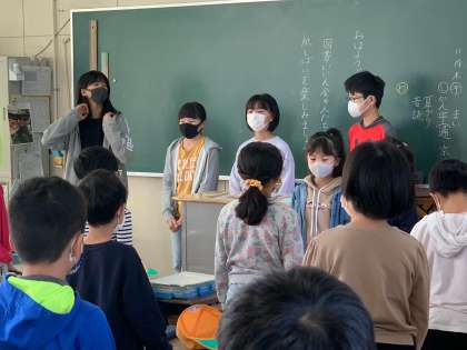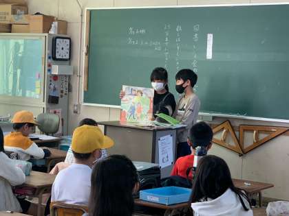 1、2年生の教室に、図書委員会の児童が紙芝居を読みに行きました。
