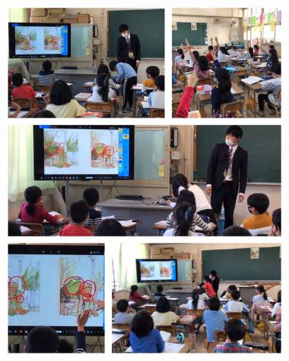 がまくん、かえるくんの違いに気づき、様子や気持ちを想像し、積極的発表しています。