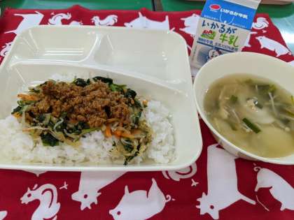 11月20日(金)のこんだては「ドライカレービビンバ、トック、牛乳」です。