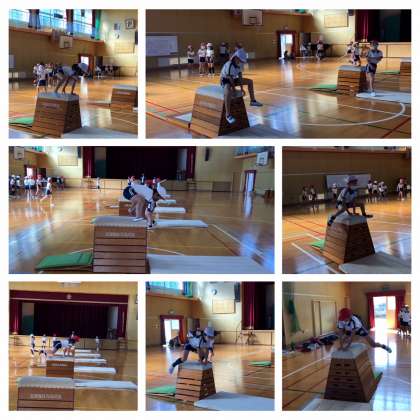 とべる、とべないがはっきりわかる種目ですが、肩を前方へ移動させる技術をつかめば、必ず跳べるようになります。頑張ろう!