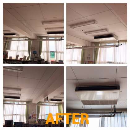 連休中に室内機の交換工事を行い、新しいエアコンが設置されています。