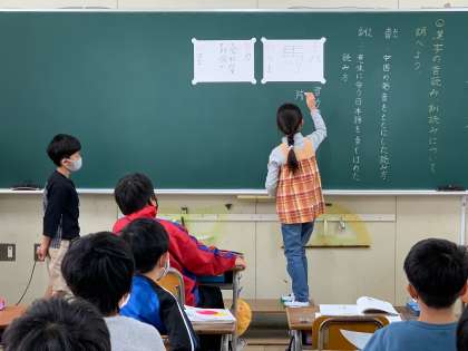 音読みだけでどの漢字かを当てるクイズをしたり、自分の名前は音読みか訓読みかを辞典で調べたり、漢字の読み方について学びを深めることができました。
