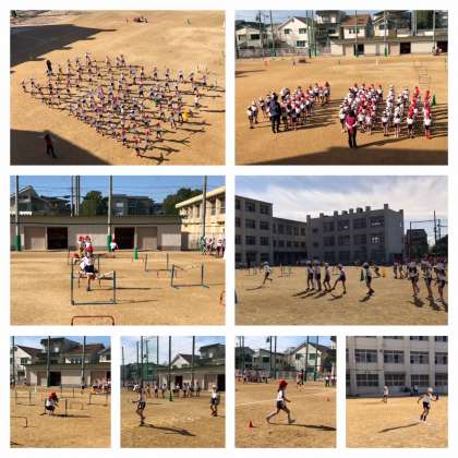 11月30日(月)3時間目、1年生はグランドで一斉体育授業です。