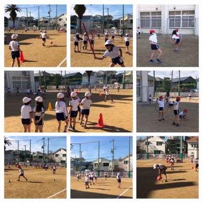 〇ドリブル走 〇フラフープ 〇バランス棒