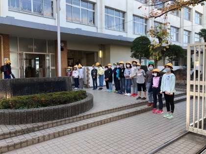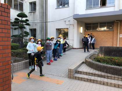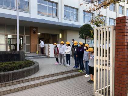 ずらりと並んだ子どもたち、元気な挨拶が響き渡ります。