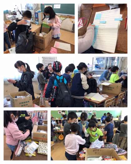 各グループで用意した物品を、非常持ち出し袋へ詰めていきます。